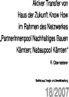 Aktiver Transfer von Haus der Zukunft Know How im Rahmen des Netzwerkes "PartnerInnenpool Nachhaltiges Bauen Kärnten; Nabaupool Kärnten"